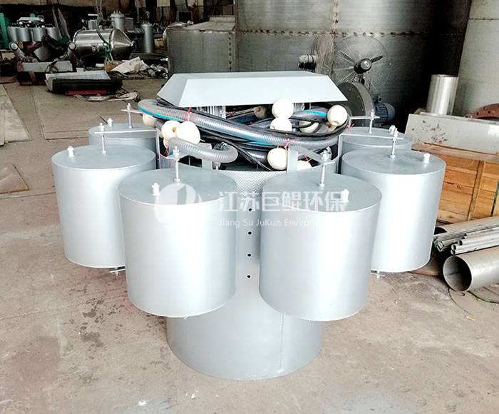 使用时将主机放入有浮油的水体,主体靠浮筒的浮力漂浮于水面,调节浮筒与分离筒的相对高度,使分离筒保持平衡并且淹没于水中,接通电源,并调节好推进器最佳转速,整机即可投入运行。