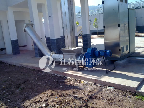 污物由进料口进入压榨机管,在压榨螺旋和物料挤压管的作用下,压缩脱水后输送至出料口,挤压的污水通过排水口排入进水渠中;